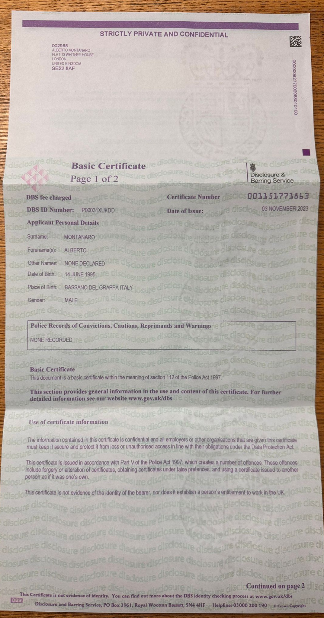 DBS check